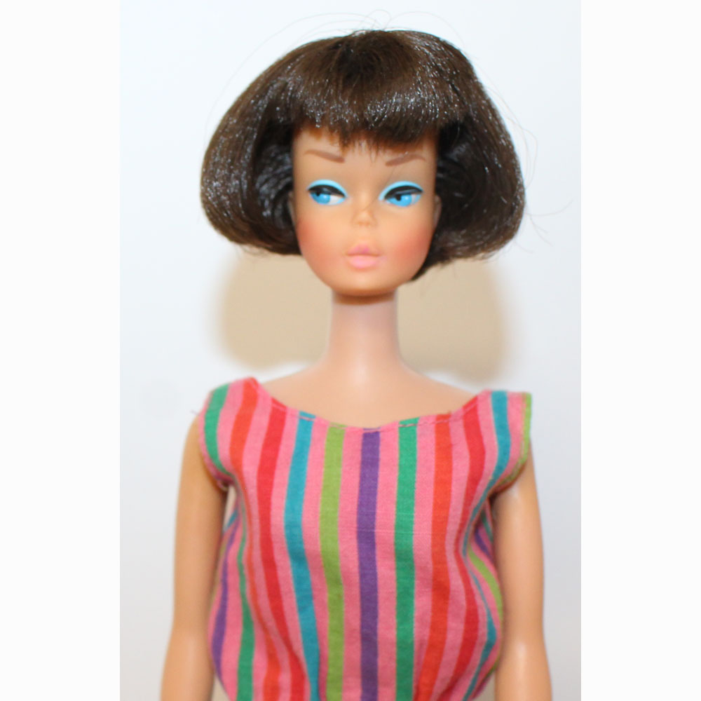 This is a rare Vintage Barbie Ash Blonde JE American Girl Side Part LOW COLOR Doll. She has her original fingernail polish. She comes in her original swimsuit, which is in great condition. Her hair is in the original set. She has nice long bangs and very full thick hair all over.ย Her face paint is all original, just stunning! She has nice full eyebrows, no fading. She has light blue eyeliner and soft blue eye shadow. Her cheeks are nice and rosy on both sides of her face. Her lip color is original and coral.ย Her body has nice tight limbs. Her legs are nicely spaced. No neck splits, green ear or earring taps. Thighs are tight and knees bend bendย She’s just stunning and awesome! NM/Mint.