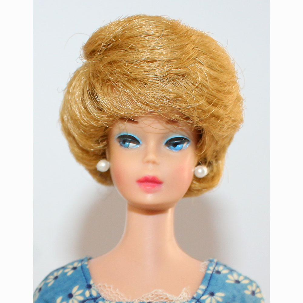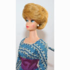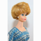 This is a Vintage Carmel Bubble Cut Barbie. Her hair is lovely and has not been cut, and there are no missing hair plugs.ย She has a great body with foot and nail polish. She has very nice color washed coral lips. She comes in her “Let’s Dance” dress. She has had green treatment but hardly noticeable. EC.