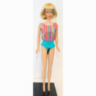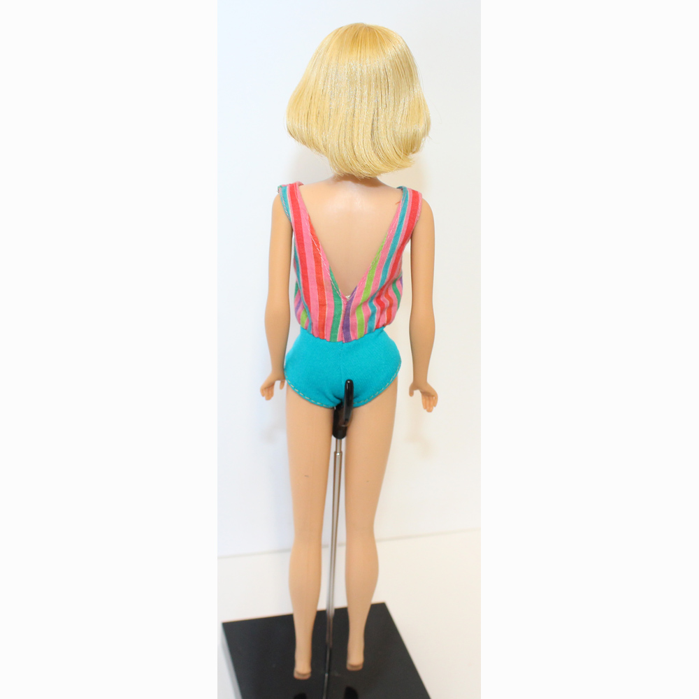 American Girl with long thick pale two toned blonde hair and the prettiest sweet face. Her lips are original and her body is mint with some toenail polis. She has her fingernail polish and toe polish. There are no green ears or green anywhere on this doll. Sheย is dressed in her original swimsuit. No chews or neck splits. Tight thighs and knees click.ย She’s just stunning and outstanding! NM/Mint.