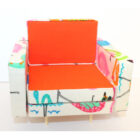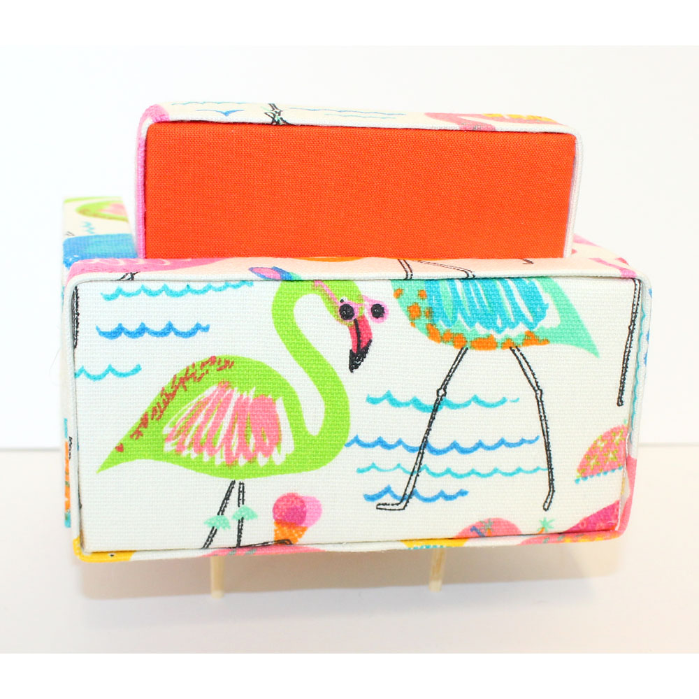 Beautifully made Barbie chair with an orange pillow. 1/6 scale, handmade & 3D printed furniture. Very mid-century! The “cushions” are reversable.