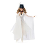 From Fleetwood Mac frontwoman to massive solo star, Stevie Nicks has been a musical icon and paragon of free-spirited style for decades. Our second Barbie doll tribute to this queen of rock is inspired by her cover look for Bella Donna, her first solo foray. She floats onto the stage in a flowing white dress with a ruched bodice, dramatic sheer sleeves, and an asymmetric hem. Add her signature top hat, tall white boots, and microphone, and sheโ€™s ready to perform for crowds of adoring fans.