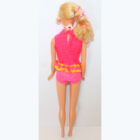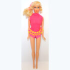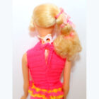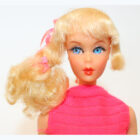 Blonde hair with “Sweep the floor” eyelashes. All original makeup and two piece outfit.ย  Arms and left leg are loose, but she does TALK! No green, pinpricks, chews, neck splits or fading. EC/NM.