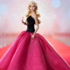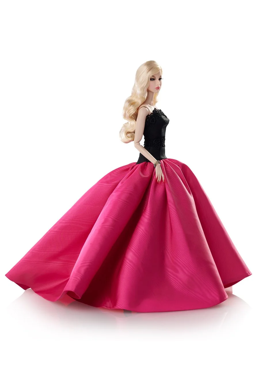 Strappy stilettos with hot pink flower detail;ย Doll-sized 20th Anniversary Gala invitation;