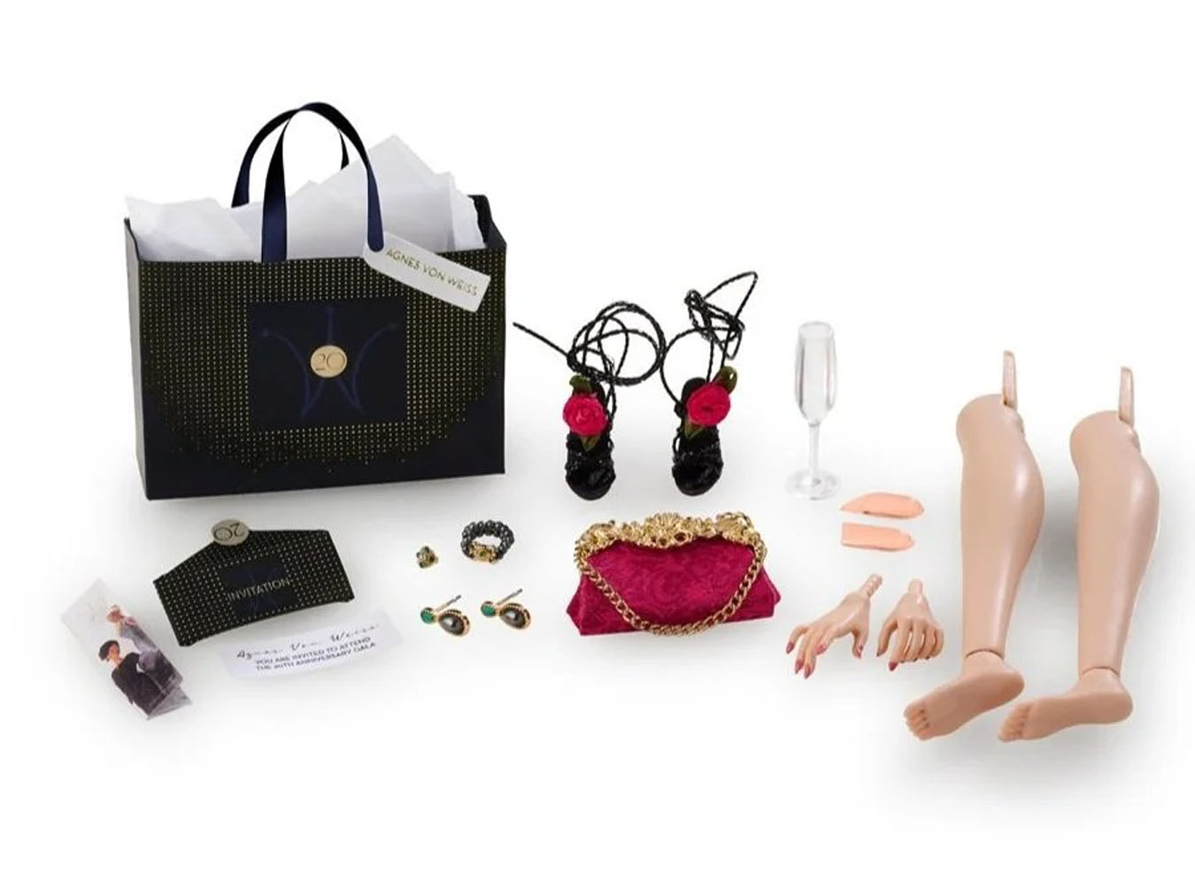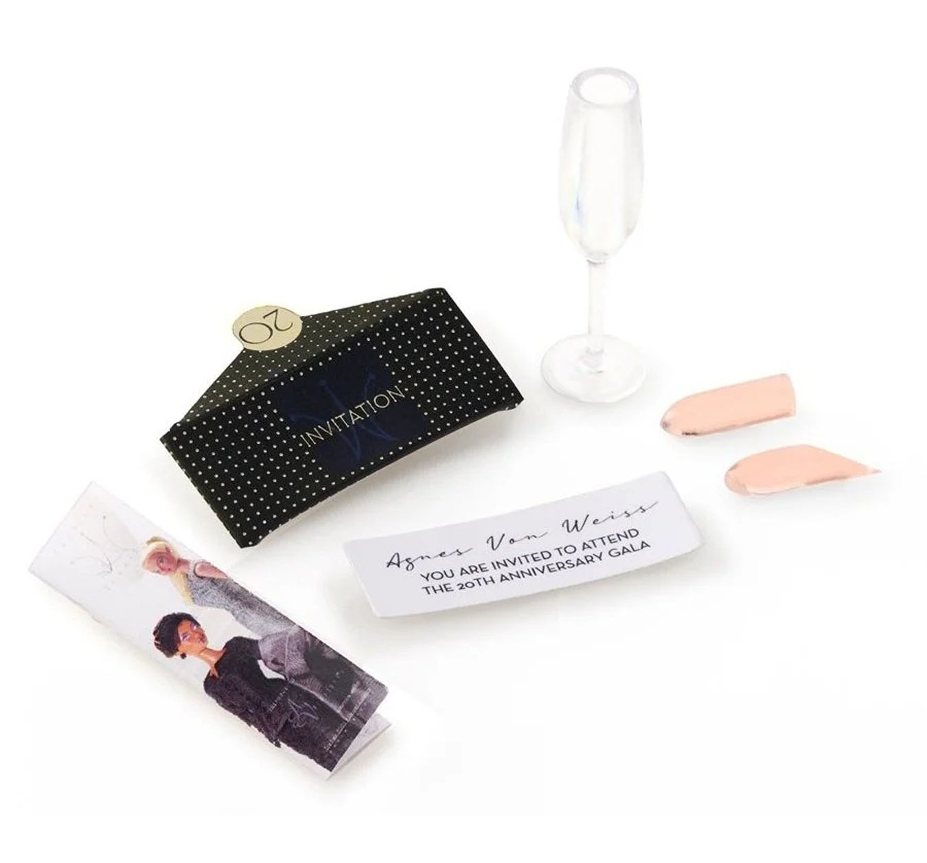 Doll-sized 20th Anniversary Gala attendee swag bag, which includes a miniature reproduction of an original Fashion Royalty dealer catalog from 2002;
