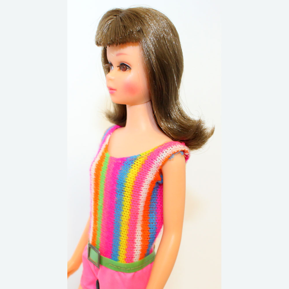 Such a gorgeous doll with all original makeup and long hair. Dressed in a mint lovely Japanese outfit with straw hat with ribbon and shoes. She has full thick hair, thick lashes and a great body with no pin pricks or fading. Thighs are tight and knees click.