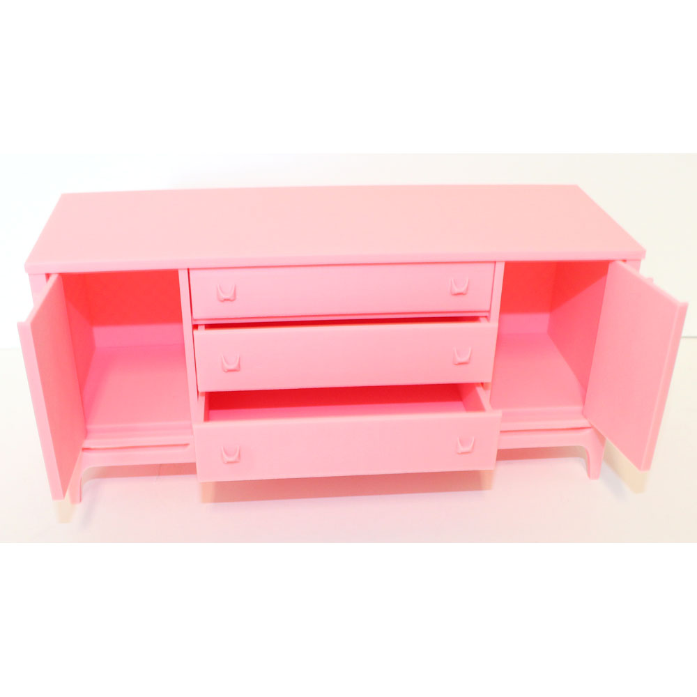 Beautifully made! 1/6 scale, handmade & 3D printed furniture. Very mid-century! All of the drawers and cabinets open. It comes with all accessories shown.