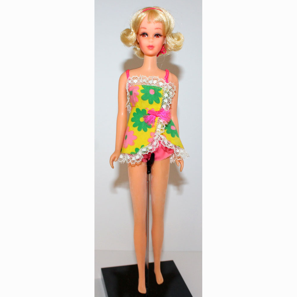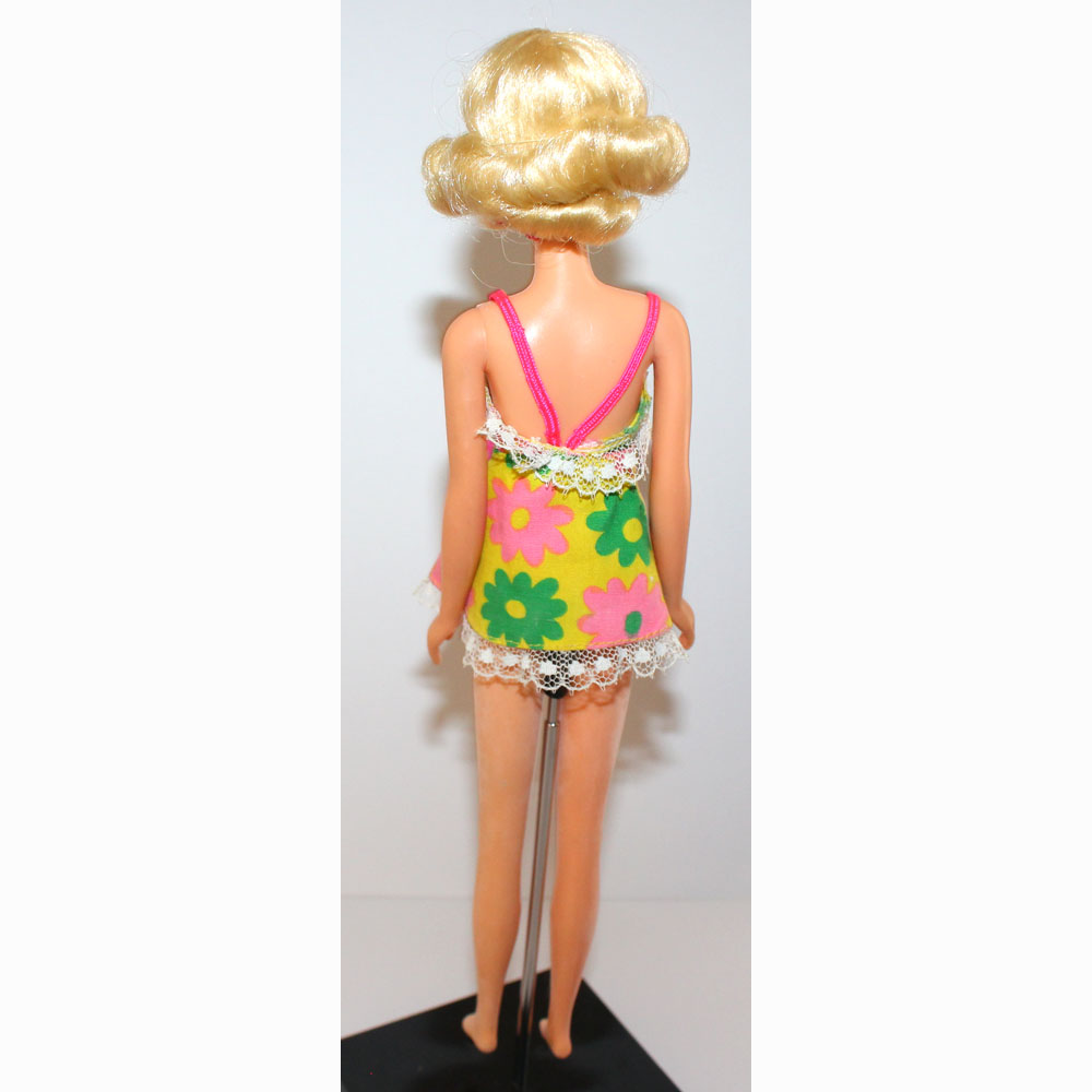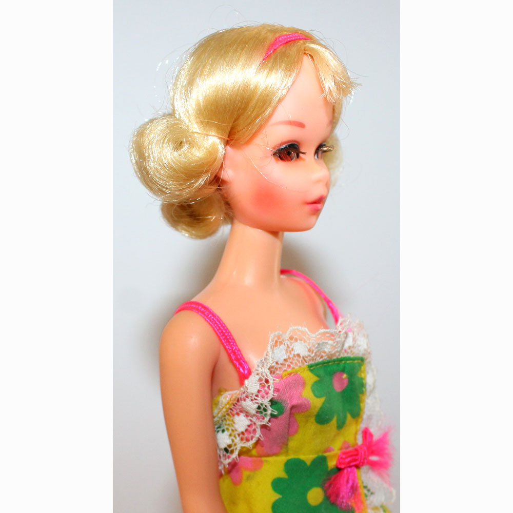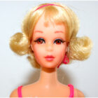 Stunning Vintage Blonde short haired Flip TNT Francie doll with original store stock mint head! All one color with no fades. Has original swimsuit and hair band. Long thick lashes with original string still in her hair. Pink full lips and rosy cheeks and mint body with no fading. A beauty! Mint.