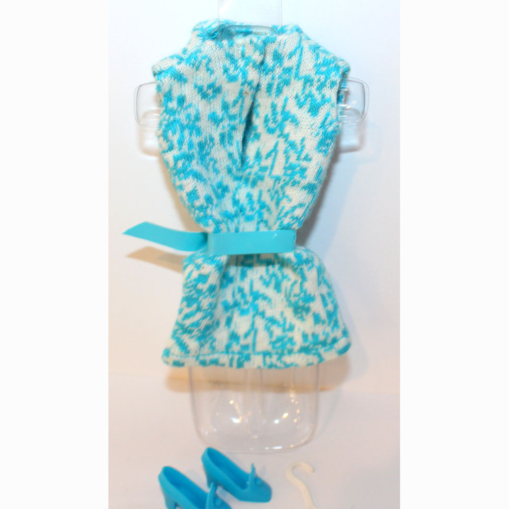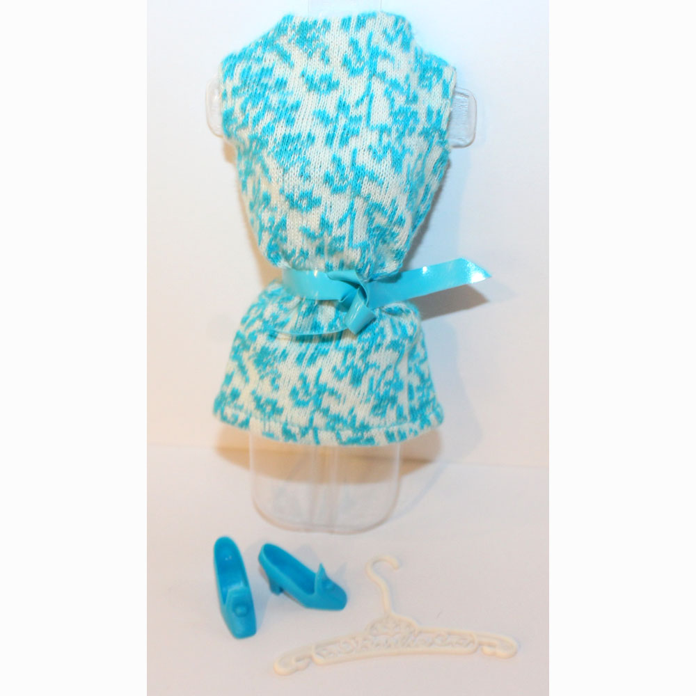 Sleeveless turquoise with white dots pattern dress with with belt. C/Pristine.
