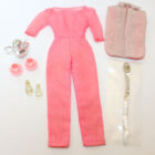 As in most cases, the belt has some discreet wear, and is not perfect like every other item in this outfit, but the belt looks great with no peeling. Otherwise COMPLETE/MINT. Those pink cups and saucers are hard to find!