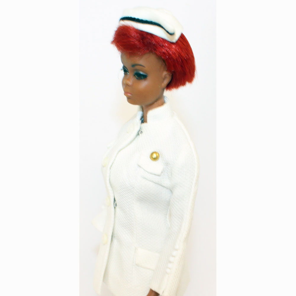 This is a Vintage Mod BARGAIN BASEMENTย Julia Twist โN Turn Barbie doll. She is in poor condition. She is wearing her VHTF mint two pieceย nurse uniform, hat and white pilgrim shoes.