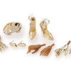 Alternate pair of golden chromed gloved hands;
