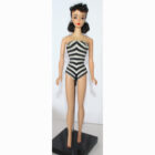 This is a Vintage #3 Brunette Ponytail Barbie with brown eyeliner and beautiful original red lips. She has her original zebra swimsuit, and all of her nail polish. She’s a pinky/creamy color all over. Her bangs are nice and thick. There is no green or ever was. Her hair is long, full and thick! Her “R” box is FC along with booklet, replaced liner, sunglasses, “R” stand and shoes. She is so pretty!