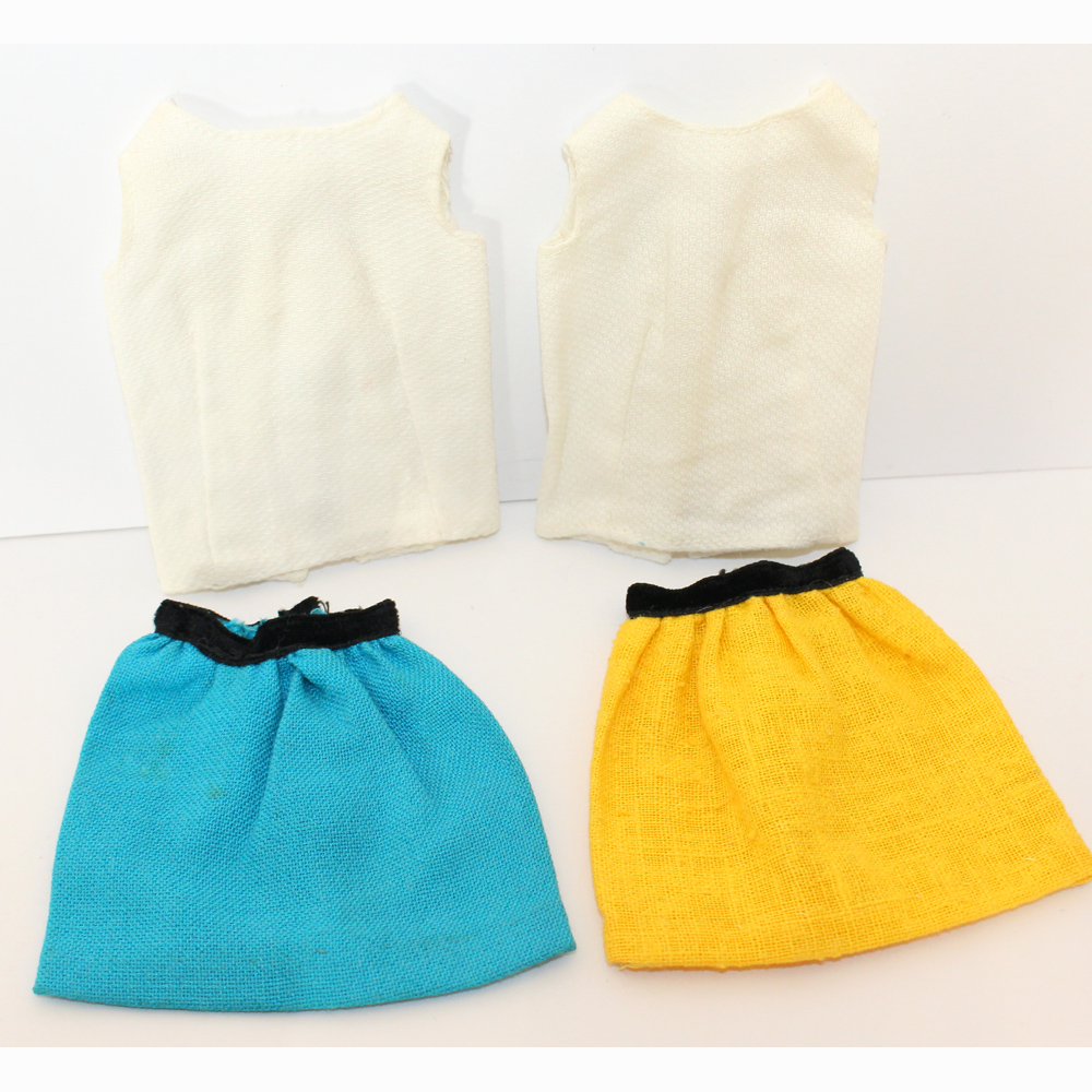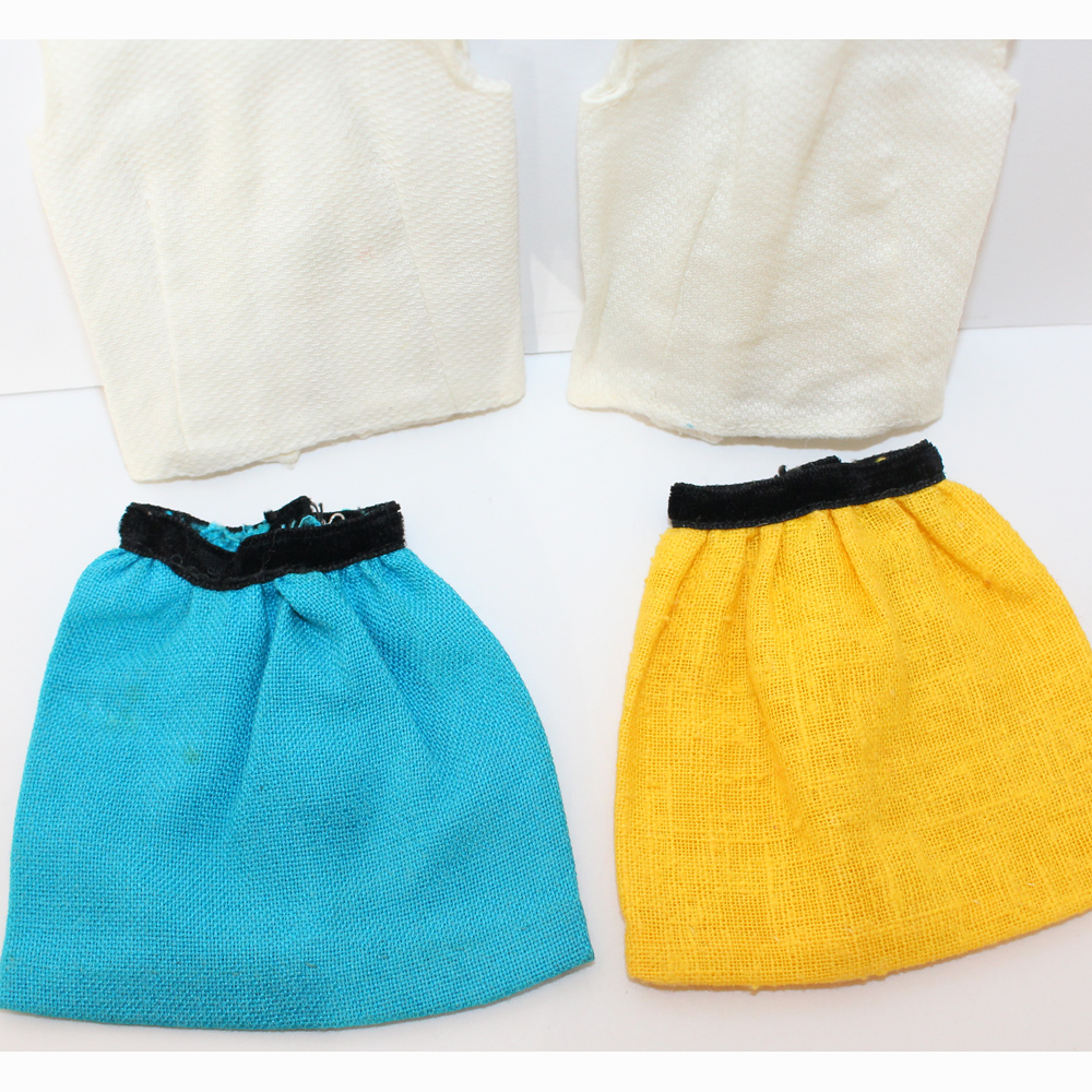 Two white linen tops and a blue and yellow skirt for each top. NM/M.