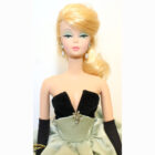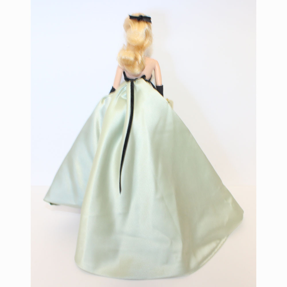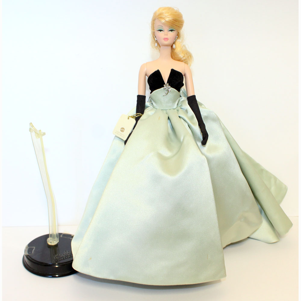 There is no box. Doll, clothing and stand only. There are a few small marks on the dress, otherwise in excellent condition.