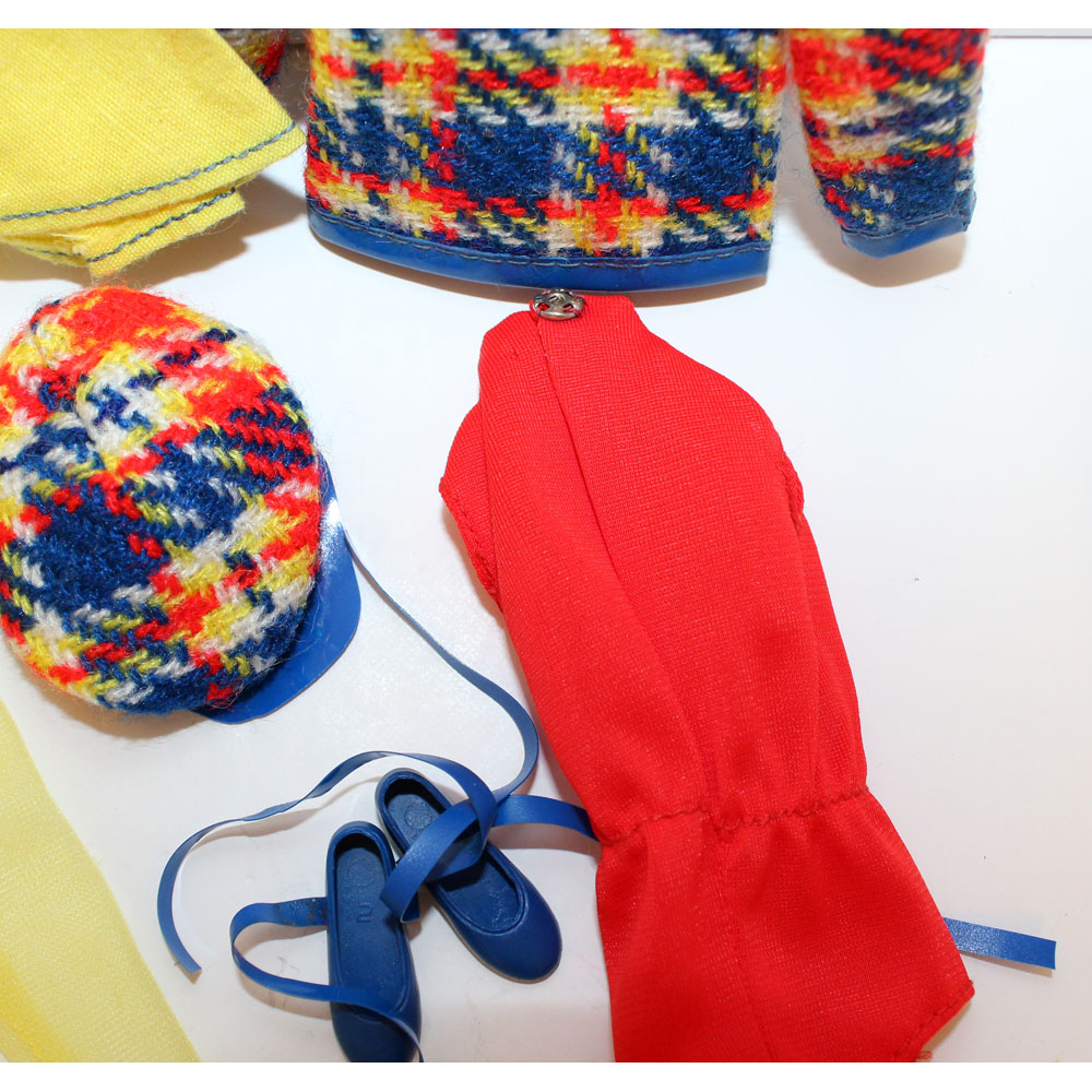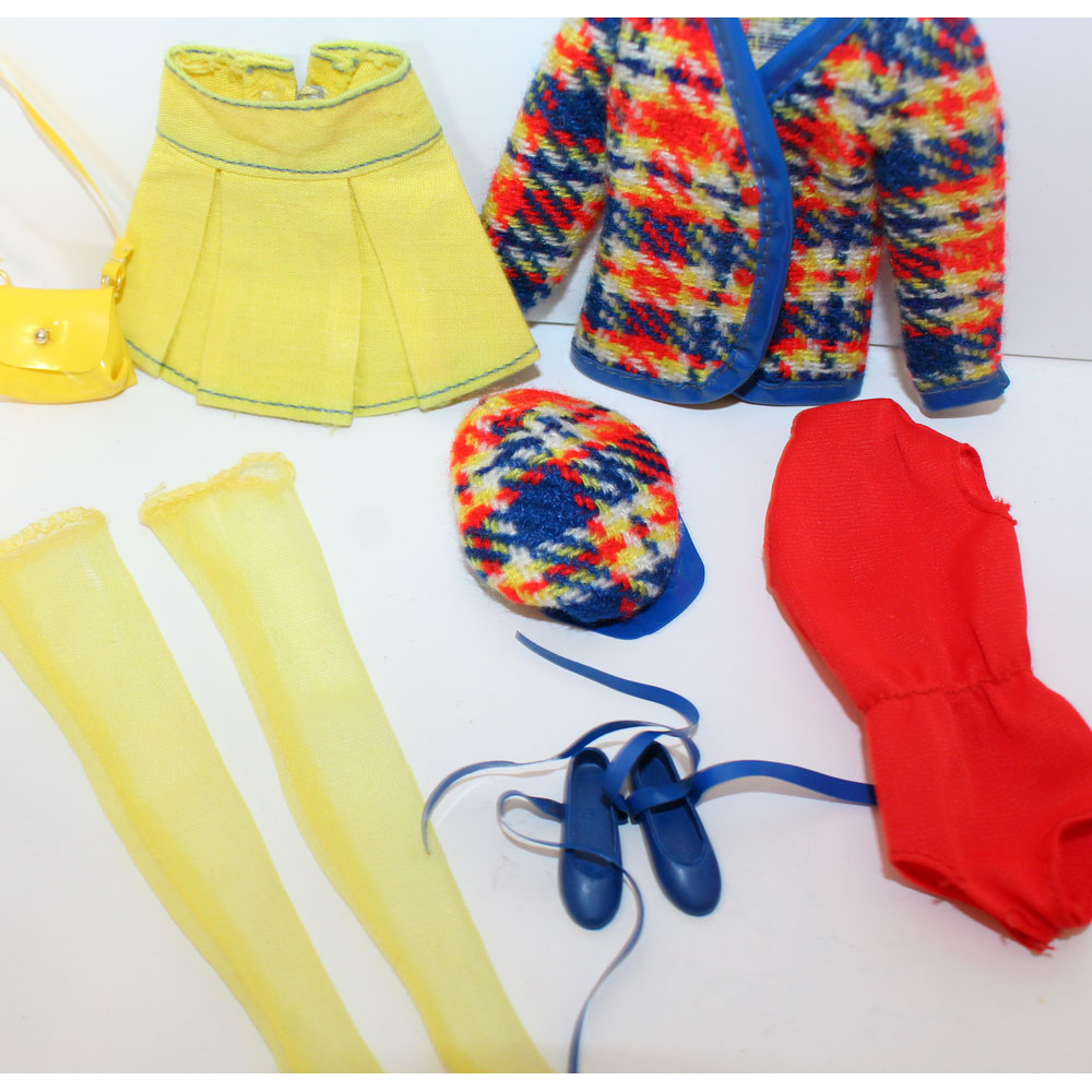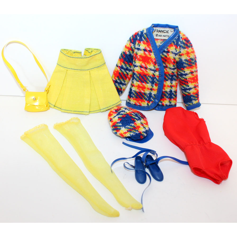 One of the rarest Francie fashions ever if not the rarest! Good luck finding it! One yellow hose has a run only on top, otherwise C/M.