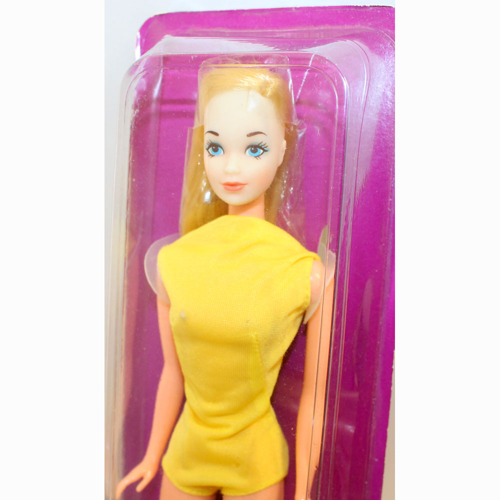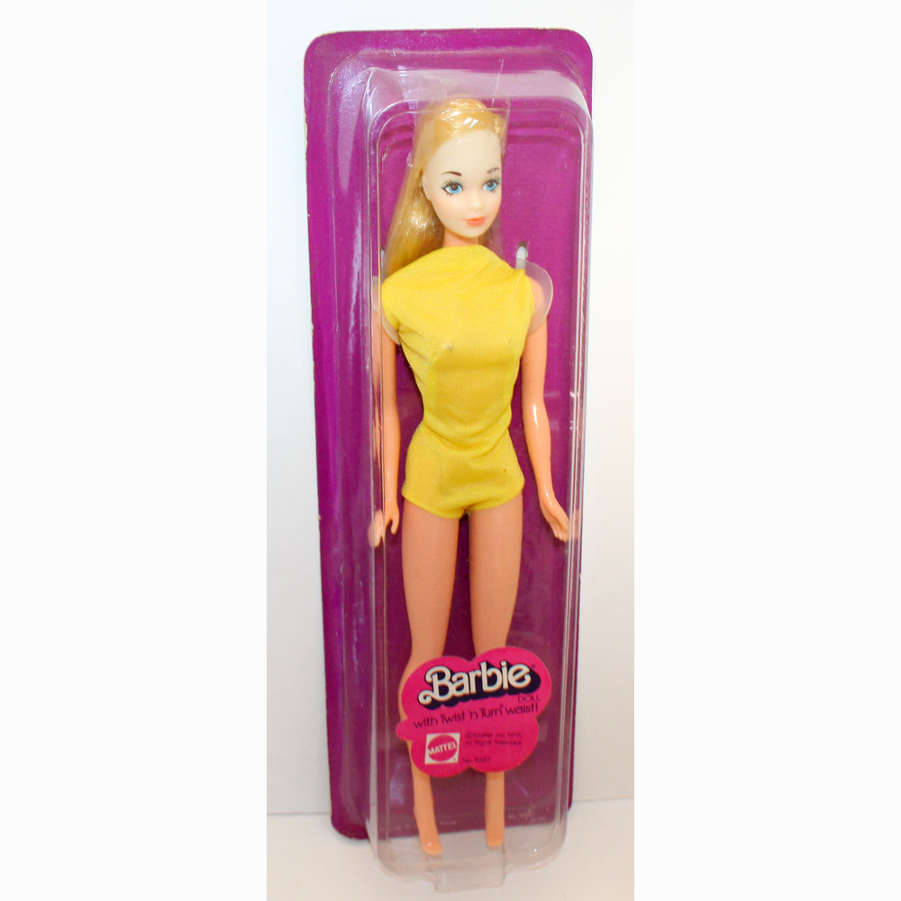The 1975 Canada Twist N’ Turn Waist Mattel Barbie (#8587) is a vintage Barbie doll with blonde straight hair, blue eyes, and a light complexion. This fashion doll is part of the Barbie franchise and is designed for adult collectors. The doll features a unique twist n’ turn waist, making it a sought-after collectible for fans of classic Barbie dolls. Ideal for collectors looking for a piece of Barbie history from the 1970s. She is mint in Bubble Pak.